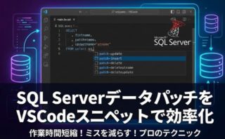 SQLパッチ作業で毎回同じような差分チェックSQLを書いていませんか?VS Codeのスニペット機能を使えば、INSERT/UPDATE/DELETEの差分チェックを一瞬で展開!作業効率が劇的に向上し、ミスも防げます。