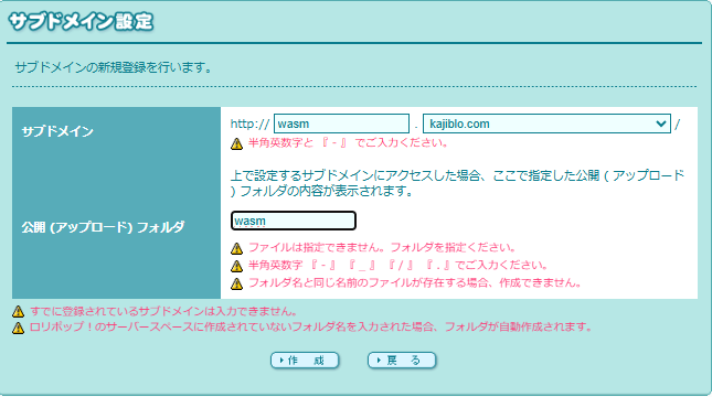 ロリポップでサブドメインを作る方法
