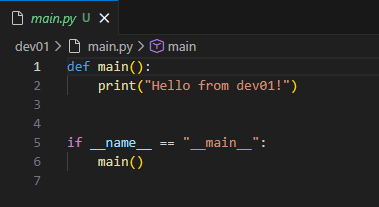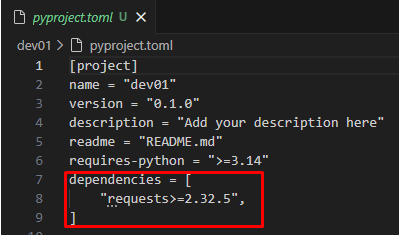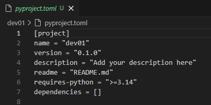 uv init プロジェクト名例としてdev01という名前で作成すると、