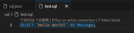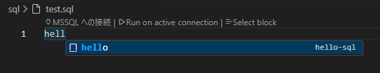 SQL らしく、Hello World を SELECT で出すスニペットを作ってみましょう。